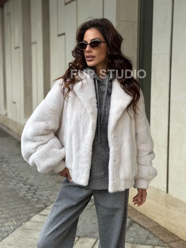Белый норковый бомбер на резинке 102288