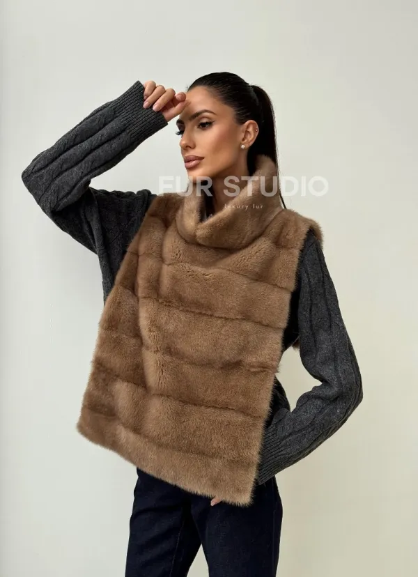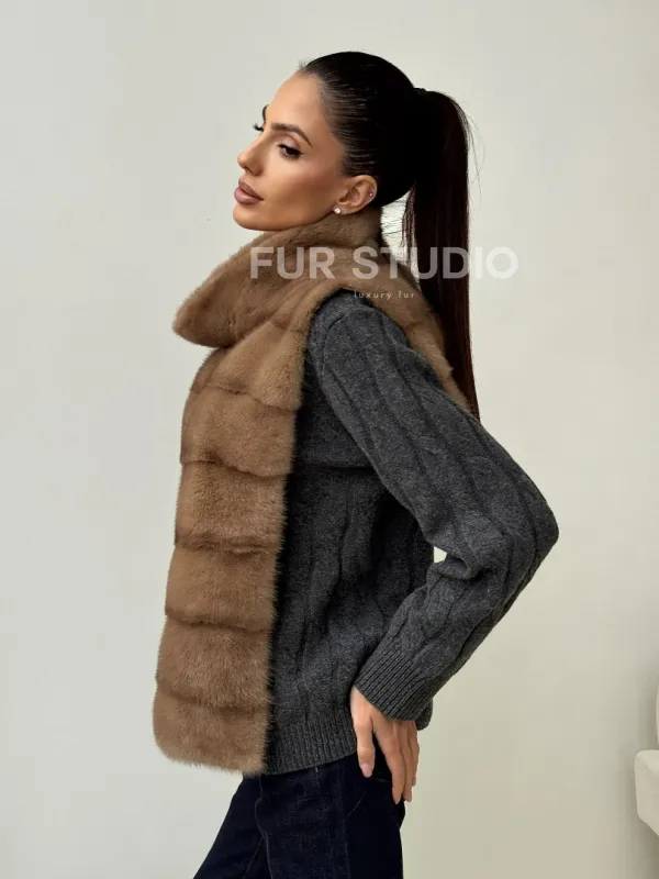 Бежевая норковая манишка 102425
