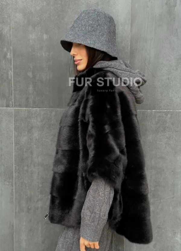 Мех данной шубы аукционная норка , цвет черный. Предлагается в размерах от 40 до 48 (oversize). Длина модели 60-65 см, что выгодно подчеркивает фигуру девушек. Эта модель идеально подойдет для девушек и женщин, предпочитающих роскошные натуральные меха.