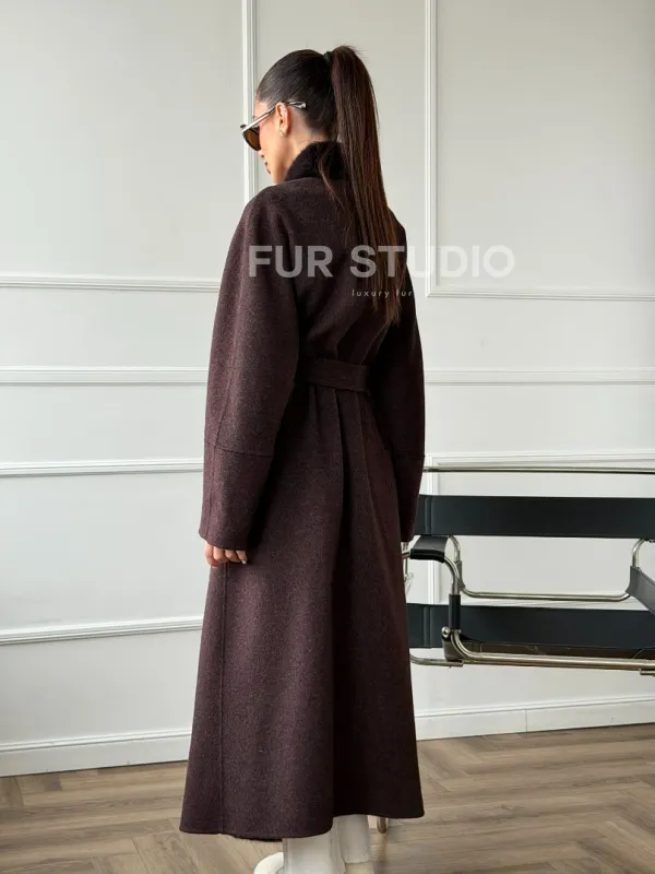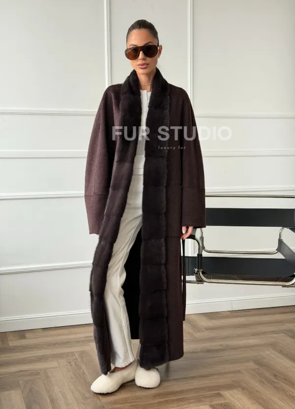 Длинное демисезонное пальто с мехом норки 102673