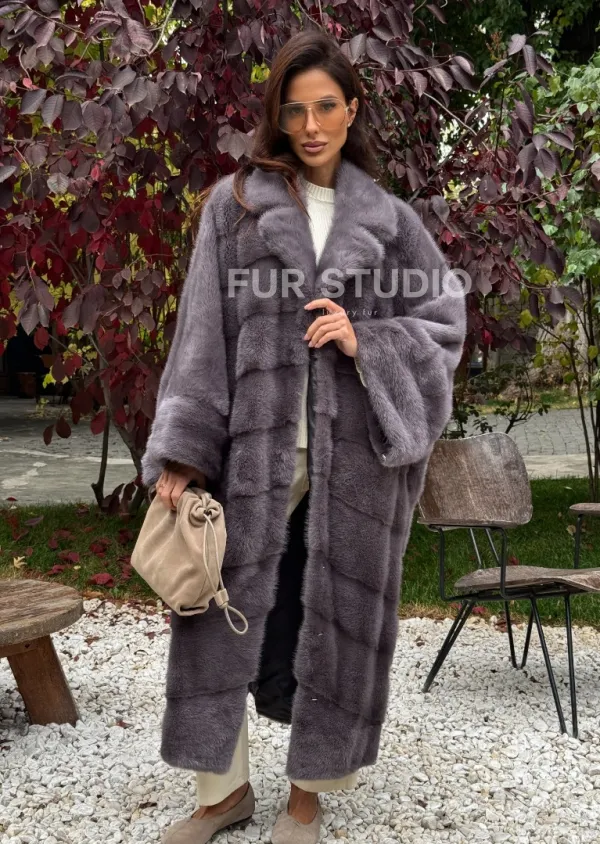 Мех данной шубы аукционная норка , цвет серый. Предлагается в размерах от oversize (42 до 68). Длина модели 120-125 см, что выгодно подчеркивает фигуру девушек. Эта модель идеально подойдет для девушек и женщин, предпочитающих роскошные натуральные меха.