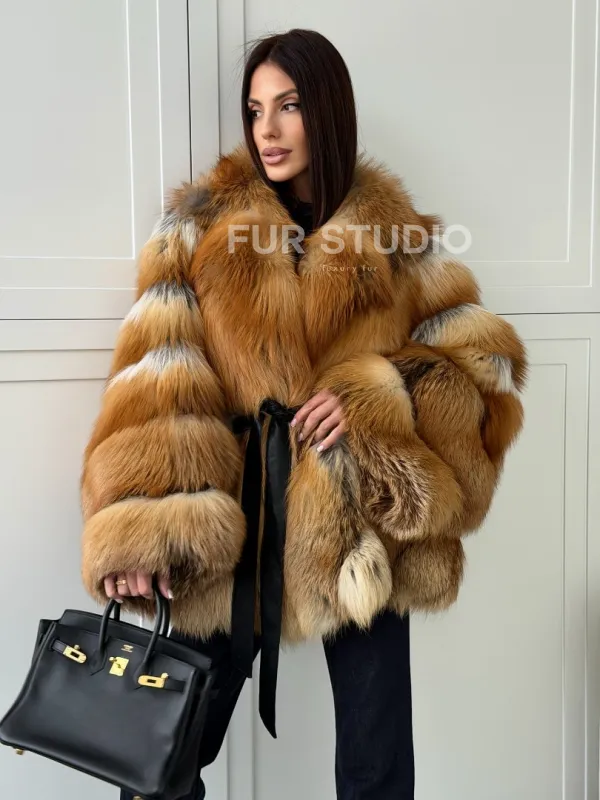 Шуба из лисы огневки - оверсайз 102808
