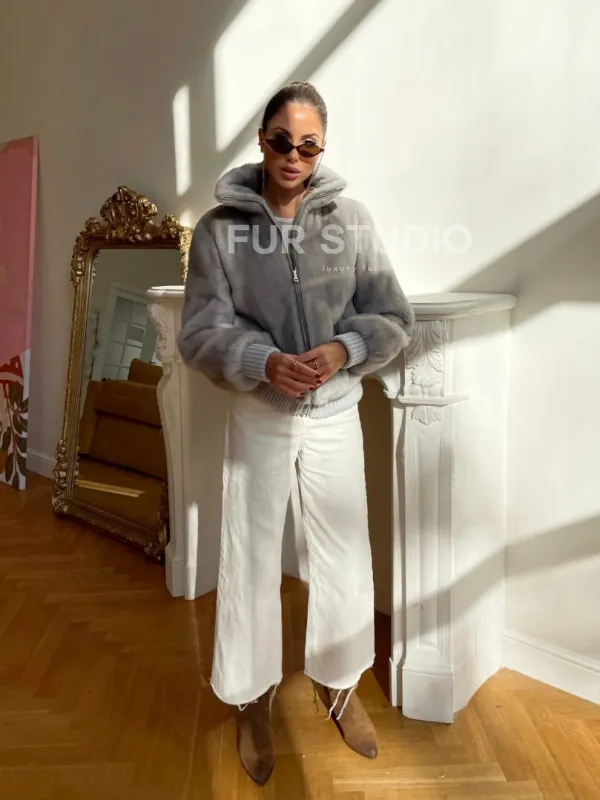 Светлая норковая куртка - бомбер 100220